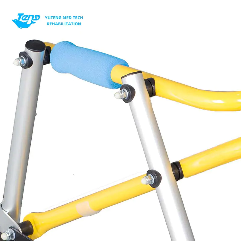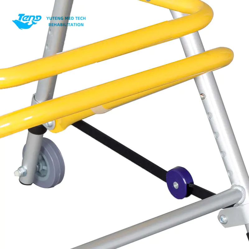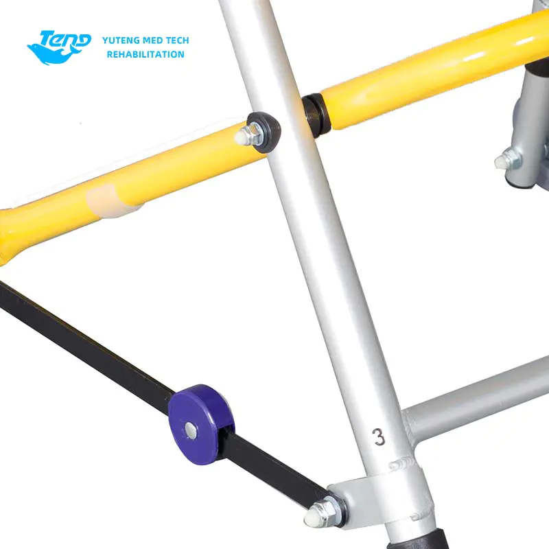 Yuteng Medical Series Products: Aluminium Alloy Walker laras adalah kerusi roda berbingkai besi yang kuat yang direka untuk ketahanan yang dipertingkatkan. Bingkai Utama: Ia diperbuat daripada tiub aloi aluminium 25.4*1.2 1, yang boleh dilipat ke belakang dan sebagainya, dengan tiub tangan tangan yang teroksida di permukaan, tiub berbentuk U yang dioksidakan kuning, pemegang busa biru, tiub kaki laras 5 lubang, dan roda 3 inci di bahagian depan dan belakang