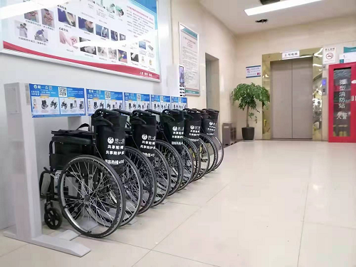 Hospital, pusat perubatan, dan klinik hampir secara universal menawarkan kerusi roda bersama berhampiran pintu masuk dan antara jabatan. Ini memberikan sokongan mobiliti yang penting untuk pesakit dan pelawat yang menavigasi kompleks perubatan yang luas.